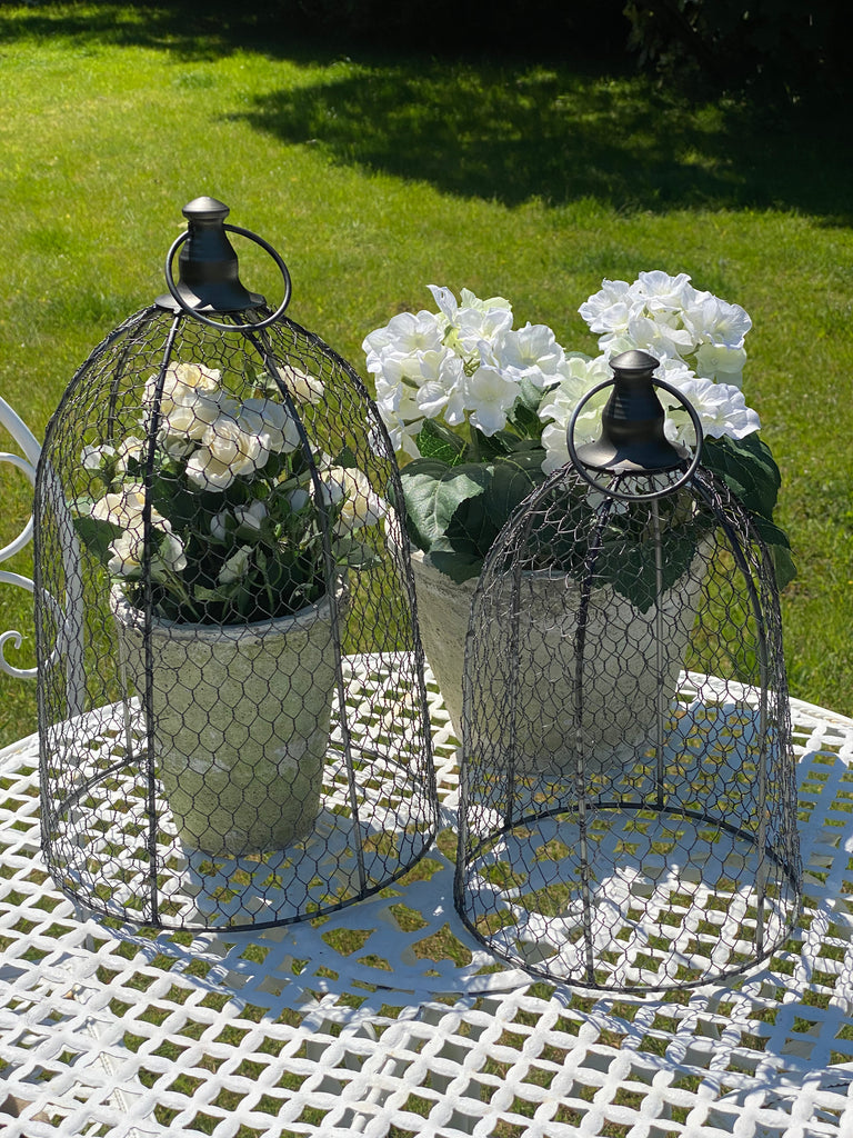 A rustic style metal mesh dome, use to protect your plants as well as adding charm.