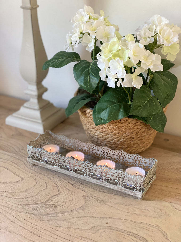 Perfectly suited for embellishing any celebratory dinner table! These delightful Fiesta candle trays feature a delicate cut out design. The delicate cutwork conjures memories of the Mediterranean as the light from the flames casts a gorgeous shadow across the table. This candle holder can be used as an indoor or outdoor accessory.